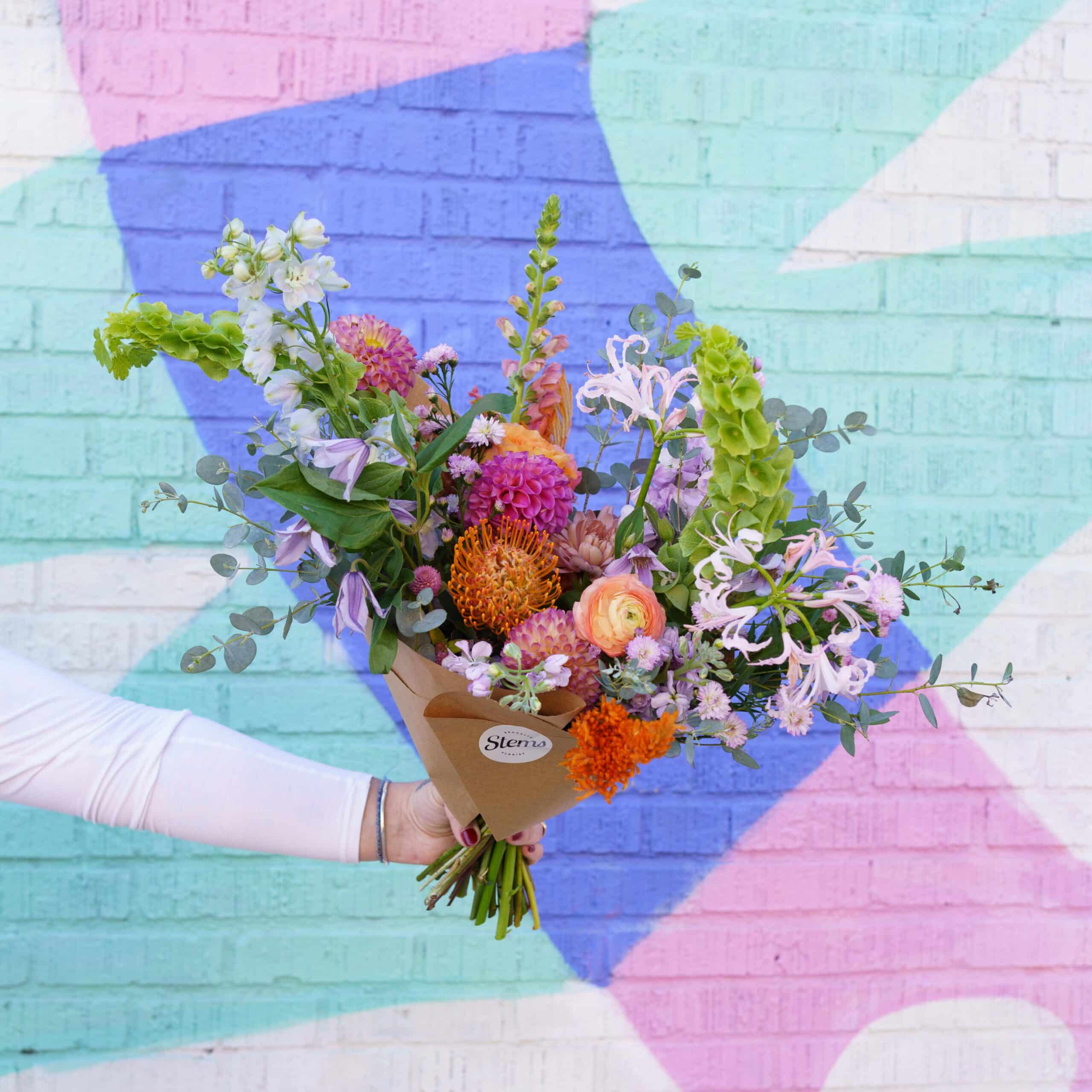 Our Signature Bouquet feature a mix of fresh, vibrant florals that speak to the seasons. Our designers are like chefs using the best seasonal florals which means you get a unique bouquet every time. Each bouquet is created using rules of color theory, principles of design and is an artfully crafted floral bouquet. This bouquet is for the real flower lover – someone who appreciates the nuance of exceptional floral selection. Expect the unexpected when you invest in a Stems’ signature bouquet!