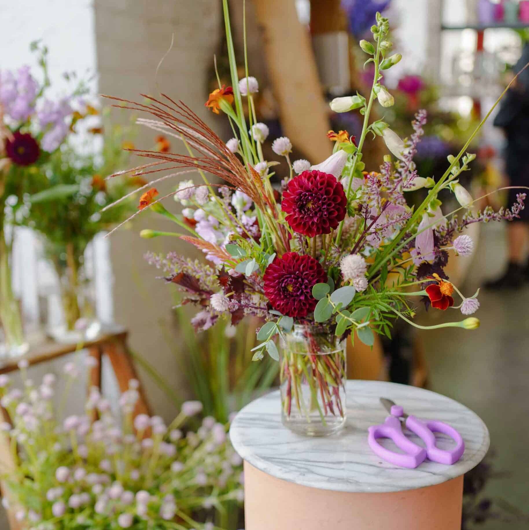 Join us in the studio to explore the foundations of floral design with one of our fabulous designers! You will learn about basic floral care, the principles of design and discuss color theory while utilizing the many textures and shapes of nature. Our workshops cater to everyone, from total newbies to seasoned creatives looking for a new hobby! We’ll supply all the tools and seasonal flowers you need to create a stunning arrangement to take home!