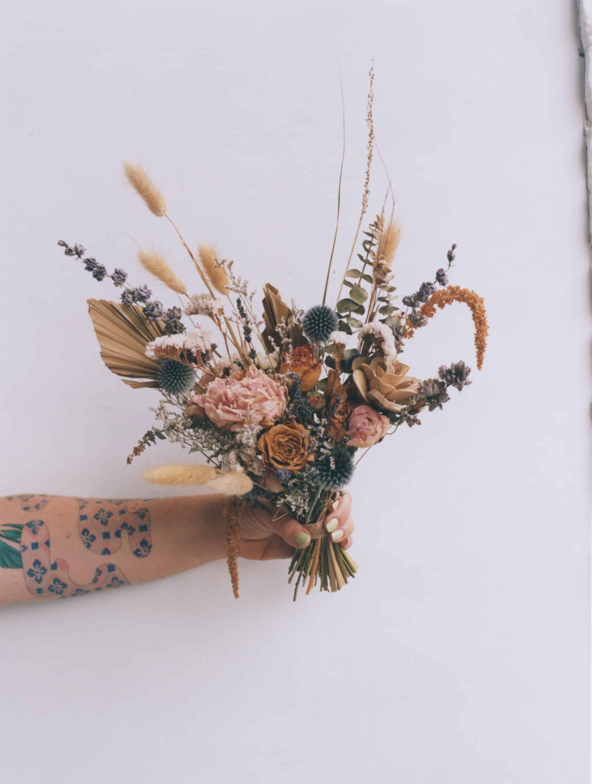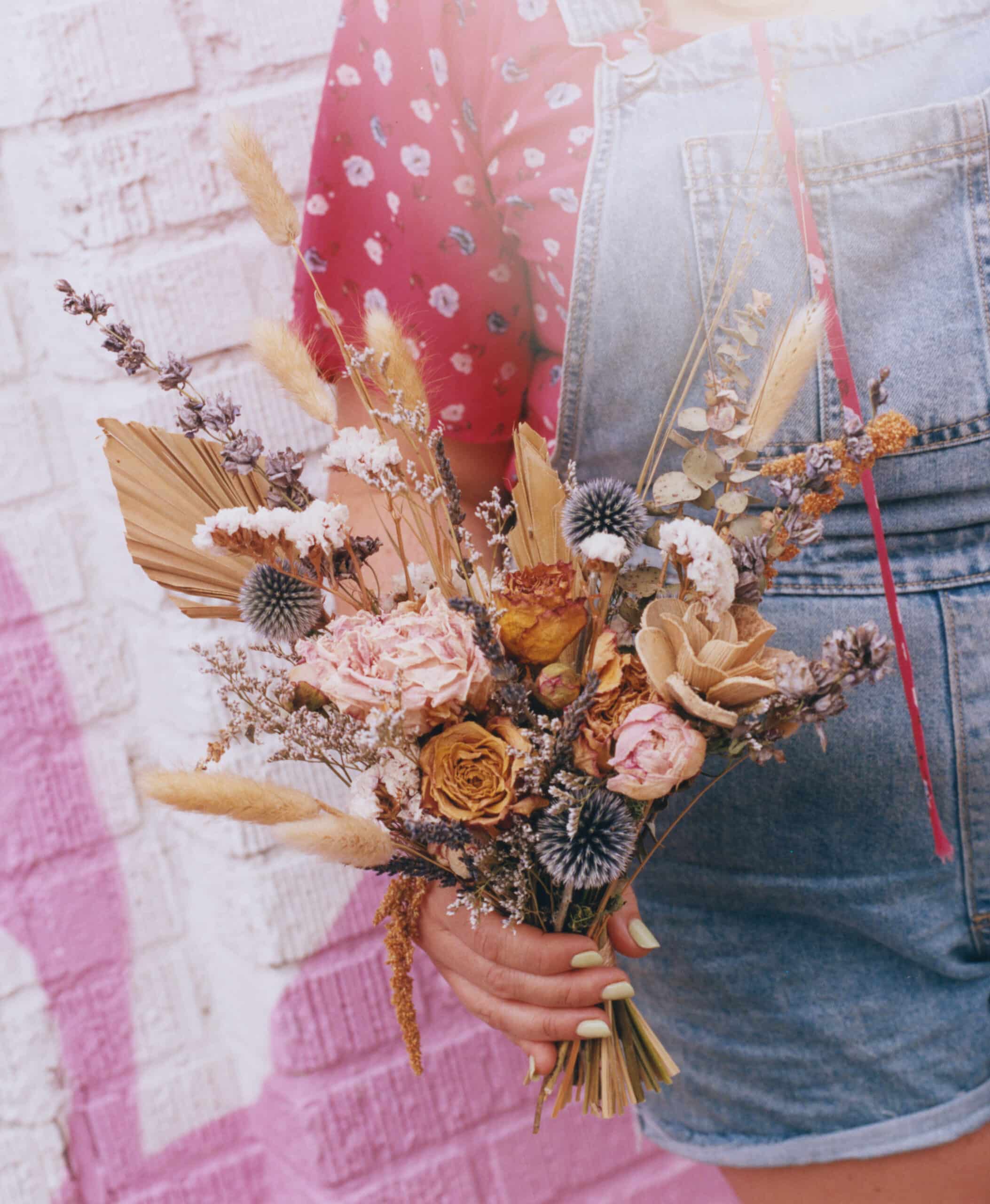 Let us complete your day of look with a bouquet of seasonal dried blooms that will add that special something to your laid back nuptials. This bouquet contain a mix of greenery, wildflowers, focal flowers and funky seasonal textures that last forever! Bouquets are tied off with ribbon or twine depending on the vibe of the bouquet. See photos for size and style examples.