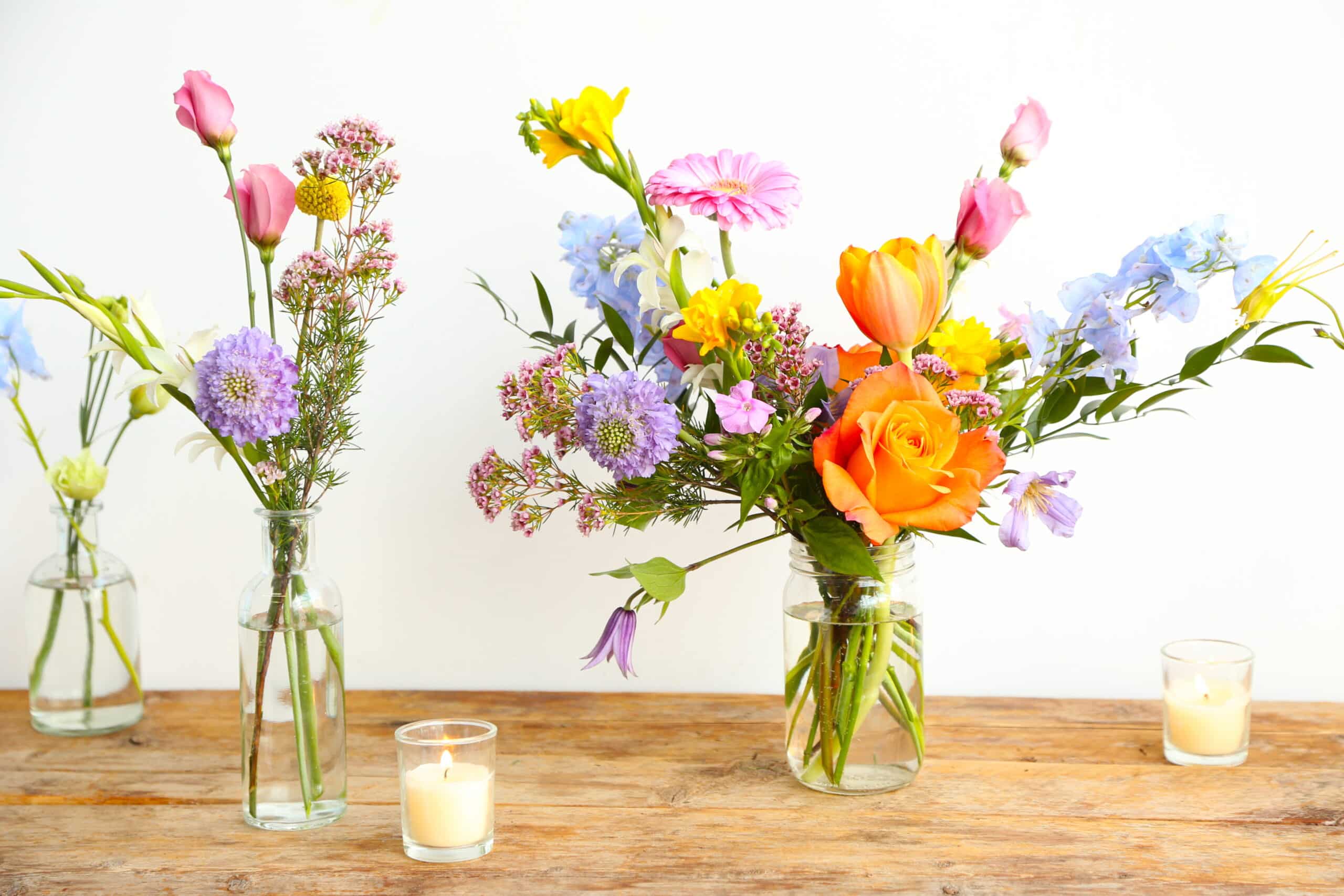 Each jar is artfully designed using seasonal florals. We treat each arrangement as a stand along piece taking care to ensure your details are perfect! This centerpiece size is ideal for smaller tables, especially longer rectangular tables needing florals. We suggest these for venues like bars or boutique restaurant for example. Guests can take these home which makes them super appealing as wedding favors.